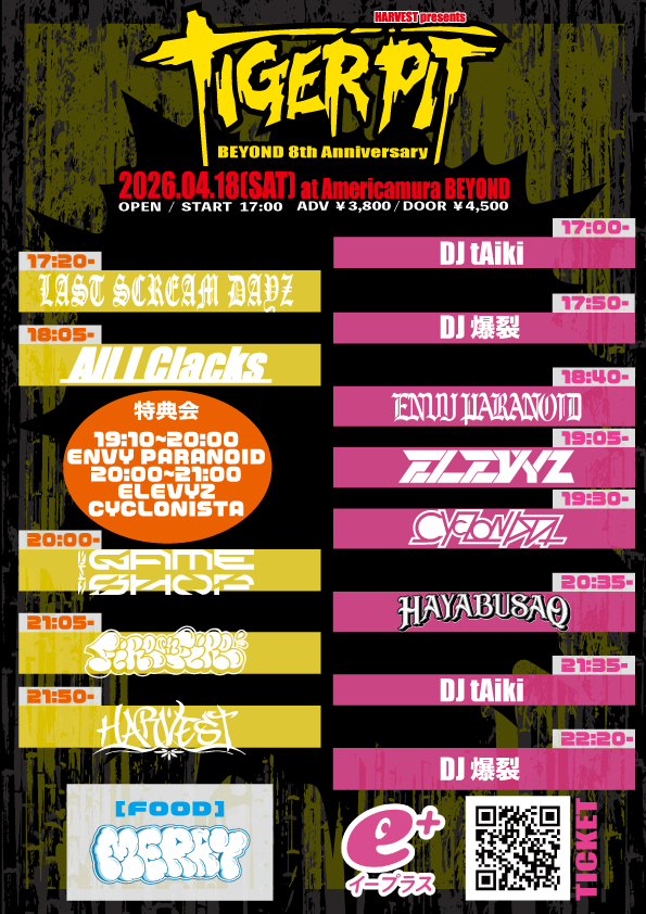 [ACT]HARVEST / FIRE ON FIRE / THE GAME SHOP / 隼Q / All I Clacks / LAST SCREAM DAYZ / CYCLONISTA / ENVY PARANOID / ELEVYZ